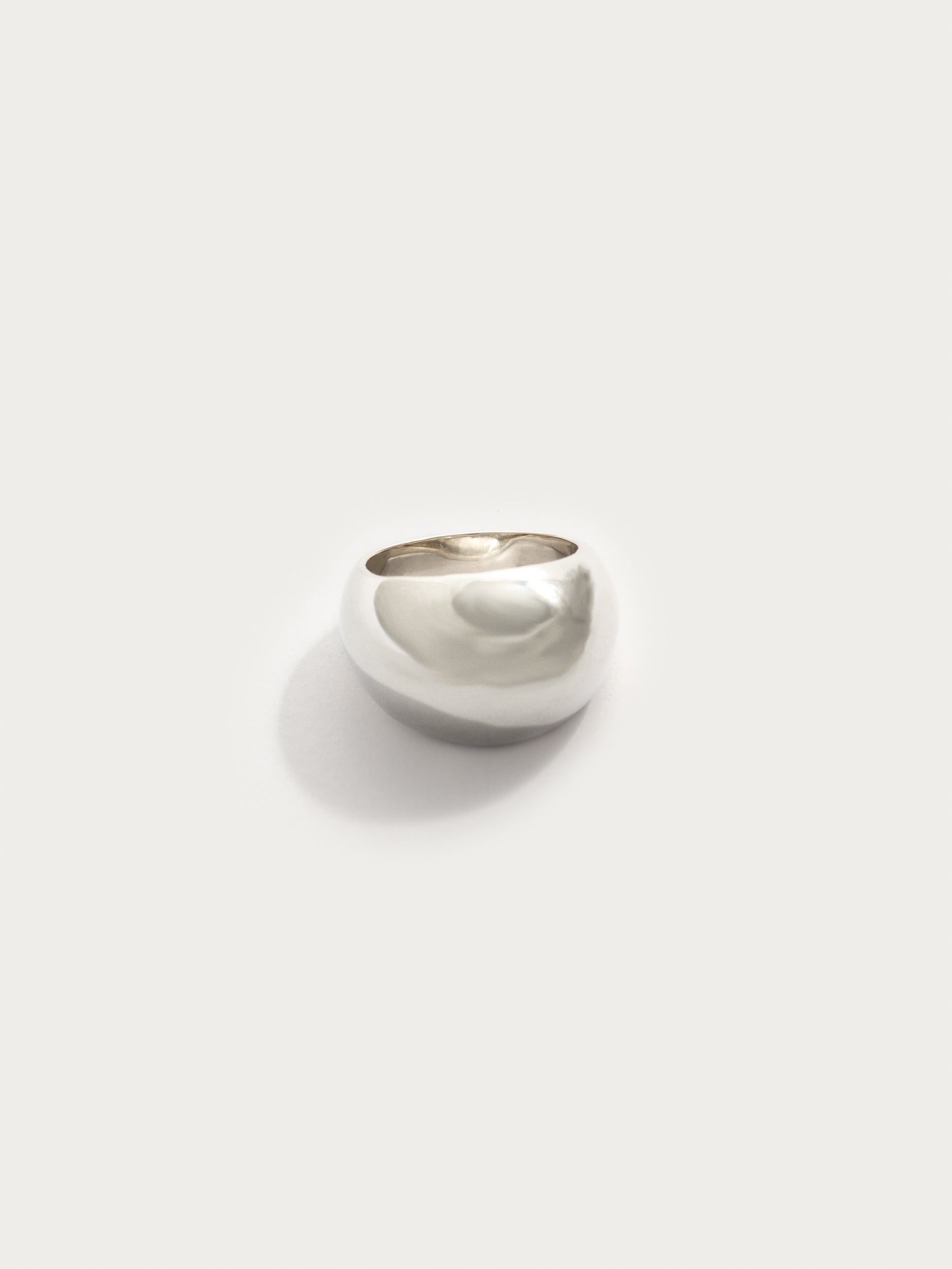 Minimalistický tvar s maximálním efektem – stříbro je formováno do měkké, kupolovité linie, která působí zároveň silně i jemně.